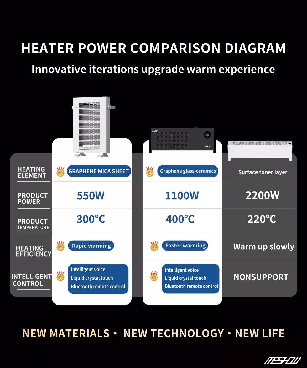 Meshow a dezvoltat un încălzitor vertical de grafen negru de 1800W de înaltă calitate. Acest produs folosește foi de mica ca material de încălzire, care oferă o încălzire mai stabilă și uniformă. Are avantajele economiei de energie, siguranță, eficiență, comoditate și protecții multiple. Poate fi utilizat în diverse locuri, cum ar fi dormitoare, săli de studiu, birouri, spații comerciale, etc. Devenind cea mai bună alegere pentru încălzirea interioară!