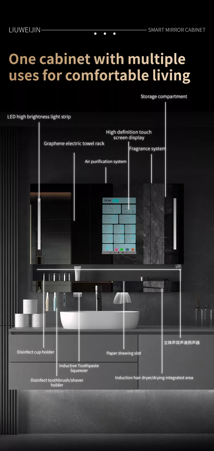 Liuwei Jinshi Grafene Intelligent Bath Oglind Dulap face ca modul tău de spălare să fie mai simplu, mai curat de baie și mai proaspăt, iar viața este mai convenabilă.